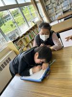 5月15 日(水)4年生は総合的な学習の時間に「福祉」の勉強をしています。飯田のお年寄りが、困っていることはなんだろう、何かできることはないのかな、ということを知りたくて、飯田小にいる避難しているお年寄りにインタビューを行いました。