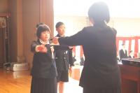 離任式では、卒業生も来校し、3月末で異動する教職員とお別れをしました。今まで飯田小学校のためにありがとうございました。