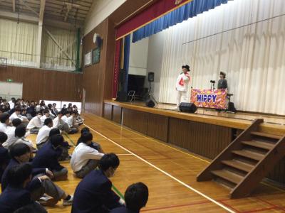 10月15日(火)に第一体育館にて、「君に捧げる応援歌」や「We can make it」などの数多くのヒットソングで知られるシンガーソングライターのHIPPYさんによるスペシャルライブが行われました!HIPPYさんの力強く、美しい歌声に生徒・教職員一同とても勇気づけられました。元日の震災や9月の豪雨災害の影響も残っている中、本校まで足を運んでくださり、そしてこのような素晴らしい機会を設けていただき心より感謝申し上げます。HIPPYさん、関係者の方々、本当にありがとうございました。