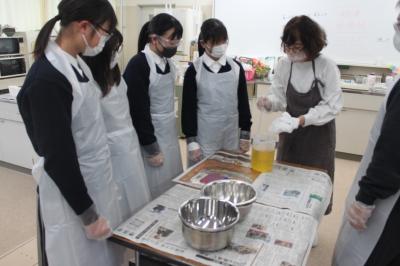 12月7日 1Cの地域学の時間に講師の方を招いて石鹸づくりを行いました。