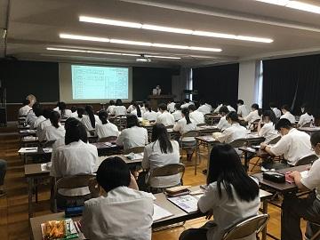 今年度については、講演会は外部業者にあらかじめ連絡をし、ライブ配信や事前に録画した動画を視聴する形で実施しました。生徒は4年制大学進学志望者とその他の進学志望及び就職志望者に分かれ、4つの会場に分かれそれぞれ視聴しました。講演では入試の仕組みや流れ、就職に向けた勉強の心構えなど、それぞれの志望に応じた内容となっていました。講演後さっそく勉強にさらに力を入れたと話す生徒もおり、有意義な講演会となりました。
