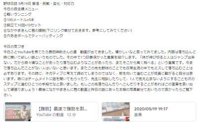 そんな休業中の野球部ですが、オンラインで様々な取組を