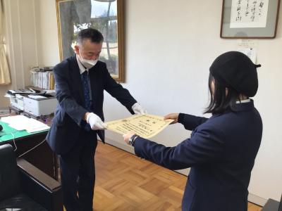 11月16日、輪島税務署の方が本校に来られ、登岸さんに表彰状を授与しました。