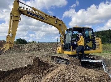 現場では、実際に重機を操作し、掘削作業を体験しました。