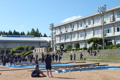 9月21日 午後より、全学年でデコレーション(体育祭応援用大看板)立てを行いました。