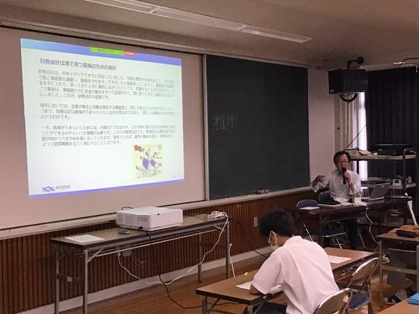 参加した生徒は1年生17名、2年生22名、3年生3名の合計42名。熱心に両講師の話を聞き、企業の経営の仕方、経営の難しさなど、第一線で活躍する方々から直接指導をうけることができました。