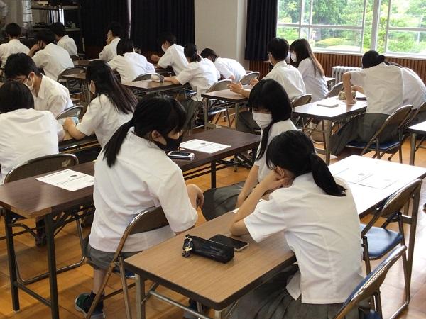 7月26日(月)に、緑丘中学校3年生・宝立小中学校9年生を対象に、各中学・小中学校を卒業した本校生徒が講師を務める進路講演会が開かれました。どちらの学校も、生徒間の対話を重視した形で行われました。