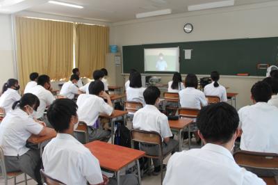 9月9日 7限目のロングホームルームの時間に インターハイ活動結果報告と前期新人戦壮行式がオンライン配信で行われました。