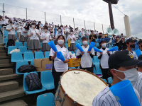 学校からもバスを3台手配し、ブラスバンドと一体となった応援が出来ました。