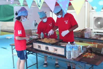 (3) 調理する際は生徒同士が近距離で活動することのないように配慮するとともに、販売時に行列が密にならないよう、「時間制限をする」、「導線を示す」等の工夫をする。