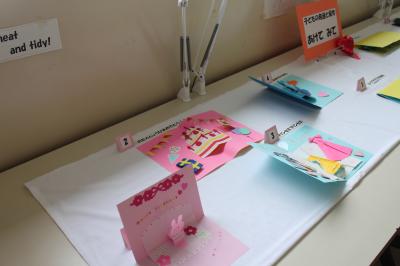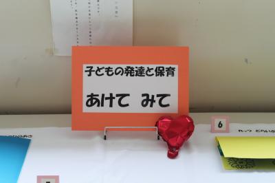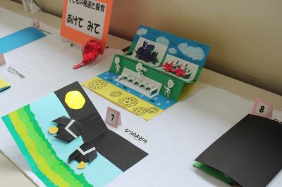 図書室前に3年C組の【家庭科・子どもの発達と保育】の授業で生徒たちが作成した作品を展示しています。