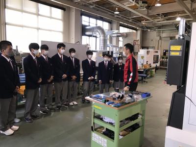 10月26日、2年D組の生徒27名が【ふるさとに学ぶクリエイティブ人材育成事業】の一環で県内の地元企業を見学してきました。生徒たちは地元の企業を具体的に知ることによって、ふるさとを再発見したようです。また、社会に出るということを体感し、卒業後の進路について考えるきっかけになりました。