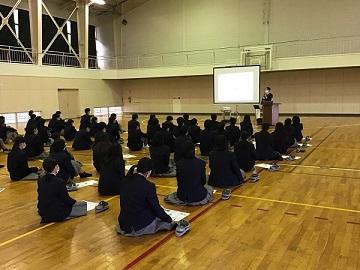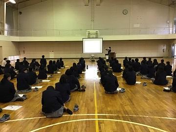 また、同じ時間には1年生を対象とした進路講演会が行われました。文理選択についてなど、1年生にとって今まさに自分たちがしなければならないことについて、真剣に説明を聞いて検討するよい機会となりました。