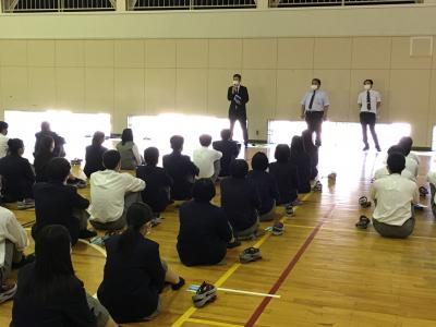 10月4日(月)に、新人大会の壮行式、及び後期生徒会役員の認証式を行いました。壮行式は他の部よりも早い日程で開催されるソフトボール部、商業研究部、相撲部にエールをおくりました。