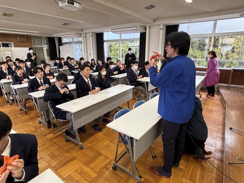 12月4日(木)、和歌山県紀伊半島にある和歌山県立串本古座高等学校の生徒・教員の皆さまが本校に来校し、「半島を救え!」プロジェクトと銘を打ち、「半島が抱える課題」や「防災」をテーマとした交流授業を行いました。