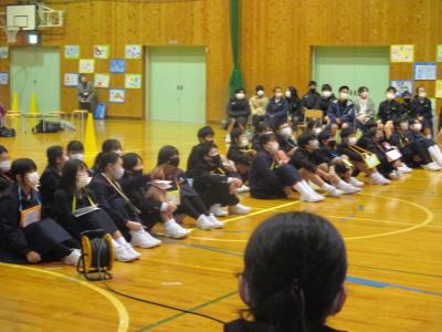 全校生徒が体育館に集まり、離任式を開くことができました。