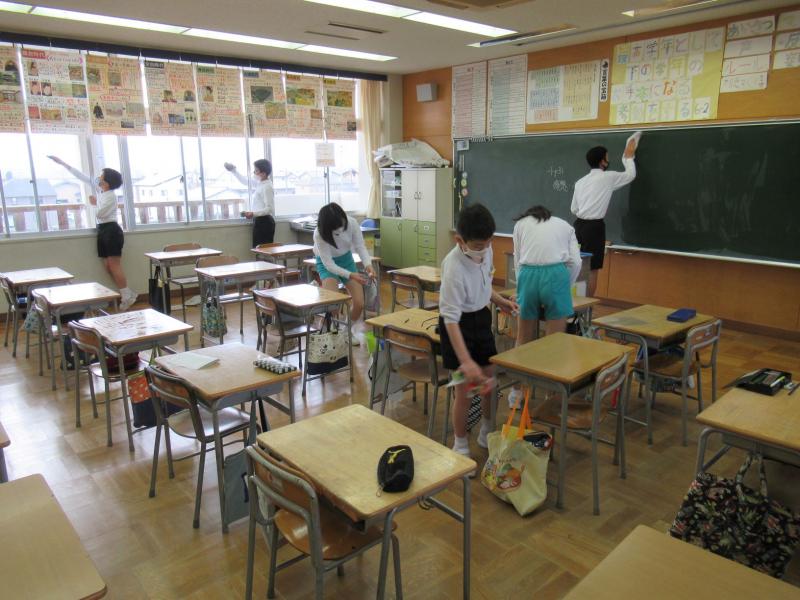 2組は,体育館や教室、特別教室など普段から使っている場所を班で決めて,そうじをしました。ピカピカにするために,時間いっぱい使ってそうじをしました。