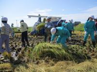 みんな真剣な面持ちで稲を刈っては、嬉しそうに運んでいました。