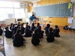 今日の朝のお話会は,1・2・3・4・6年の各1組の子供たちを対象に行われました。これまでは一学年ずつまとまって聞かせていただいていたのですが,感染症対策として人数を減らすため,一学級ずつにしました。