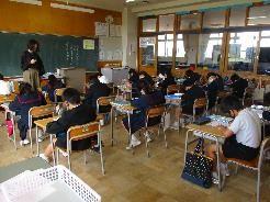 下の写真は,ランチルームで食べている6年生です。
