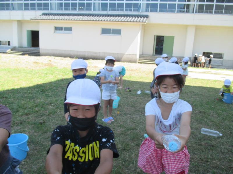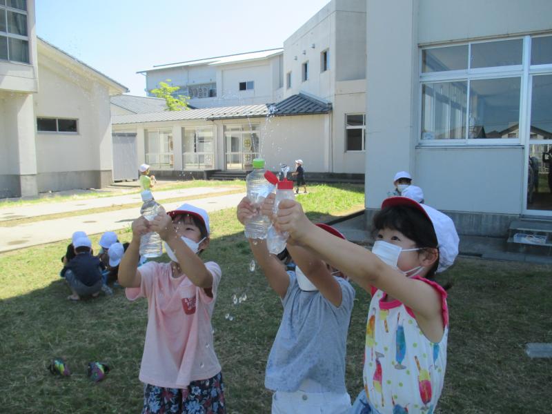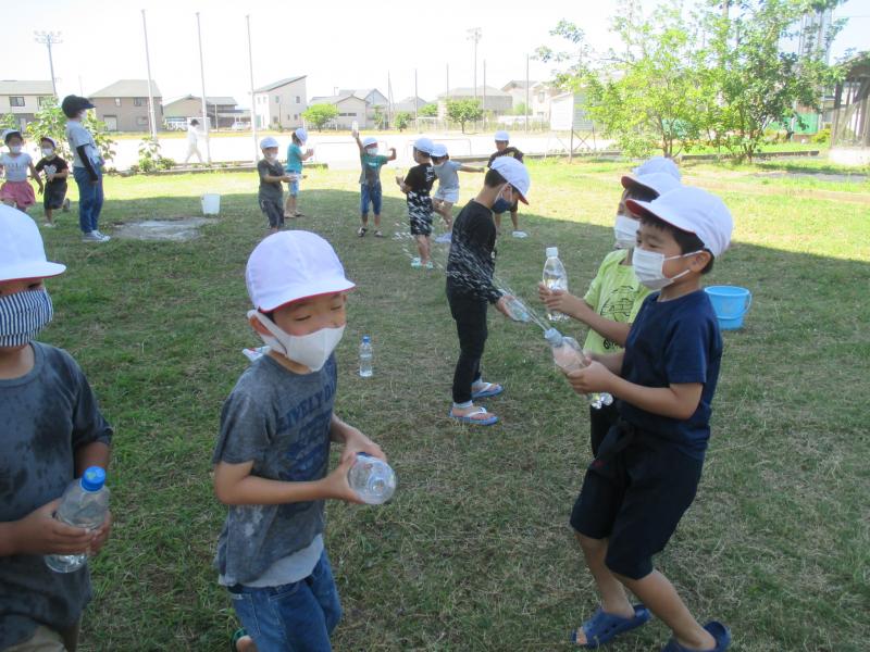 7月1日金曜日、生活科の「なつとなかよし」の学習で水遊びをしました。