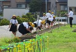 昨年度の本委員会は「飼育」を中心に活動しましたので,花壇にはほとんど花のない状態でした。今年度は,前回の委員会活動で除草をし,今回苗を植えました。明るい色が加わり,花壇が賑やかになりました。