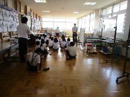 今日,3年生の理科の時間に6年生が招かれ,バッタの話をしました。昆虫を始め生き物について大変詳しい6年生で,バッタの飼い方や環境づくりのコツを教えてくれました。また,3年生の質問にもすぐに答えていました。3年生の子供たちは,虫かごと6年生の顔を見ながらしっかり聞いていました。3年生からバッタ博士が誕生するかもしれません。