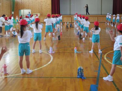 低学年の「ダンシング玉入れ」の合同練習が始まりました。