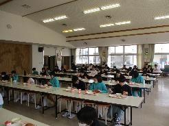 今日の給食の献立は,照り焼きチキンバーガー(胚芽バンズに照り焼きチキンを挟みます),野菜のカレーソテー,アスパラのクリーム煮,なめらかプリンです。チキンを挟むとかなり厚めのバーガーになりましたが,子供たちは顔中を口にしてぱくり!「美味しい」「うまい」とは言えませんが,表情から分かりました。