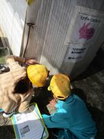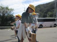 地域の方々にも協力していただき、声かけ訓練をしました。
