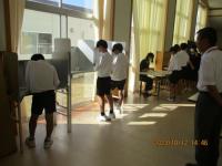 選挙の仕組みを学習した後には,架空の候補者4人のマニフェストを読み,模擬投票を行いました。