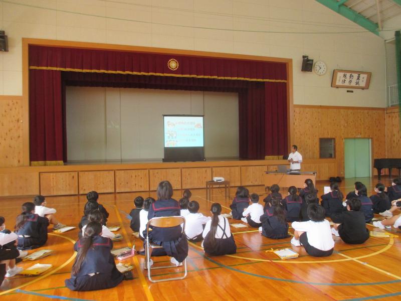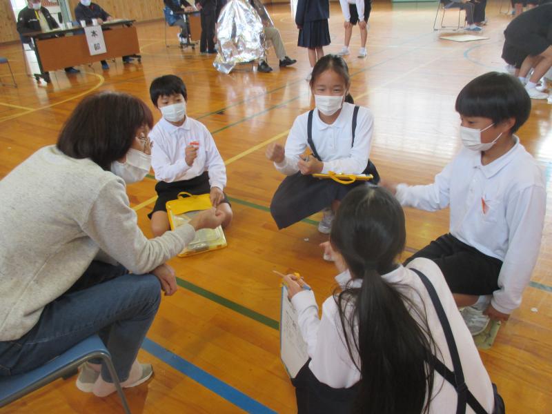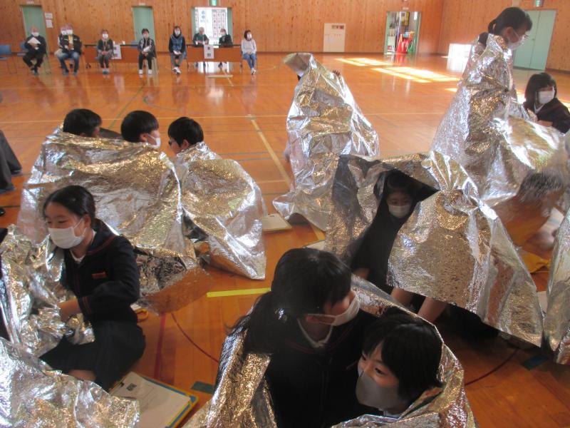 日本赤十字社の防災ボランティアリーダーの北村さんから「災害についてのお話」を聞き、災害時のトイレの使い方やアルミシートのこと、避難所での声かけの大切さなどたくさんのことを教えていただきました。