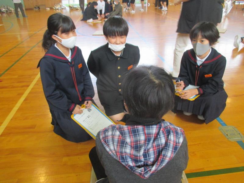 「何か困ったことはないですか。」や「必要なものはありますか。」など自分たちでどんな声をかけるか考えていました。また、避難者と目線を合わせて声もかけさせていただきました。とても優しい表情で言えました。