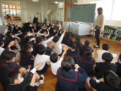 今年から4年生以上の外国語の学習は津幡南中学校の先生と学習することになりました。
