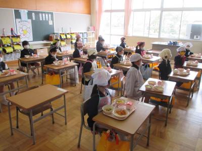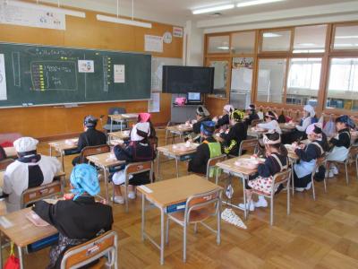 1年生は、4月17日(月)に小学校で初めて給食を食べました。