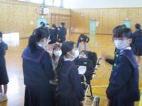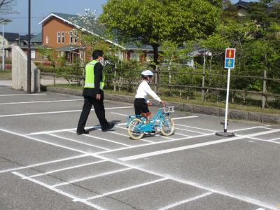 津幡警察署交通課の方と津幡町役場生活環境課の方に来ていただき、自転車安全教室を行いました。子どもたちは、事故の怖さや、自転車事故の原因などをビデオを見ながら教えていただきました。その後、駐車場に出て左側通行や横断歩道の渡り方、障害物のよけかたなどを習いました。その後、自転車を持ってきた子に実演してもらいました。実際の道路とは違いますが、安全に気を付けて運転をしていました。見学の児童もその様子を真剣に見て、学んでいました。ご家庭でも、交通ルールやマナーについて話し合い、安全意識を高めてください。子どもだけで自転車に乗るのは、「自転車安全点検表」を学校に提出してからになります。ご協力をお願いします。