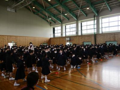 今年度、全校児童が体育館に一堂に会するのは初めてでした。