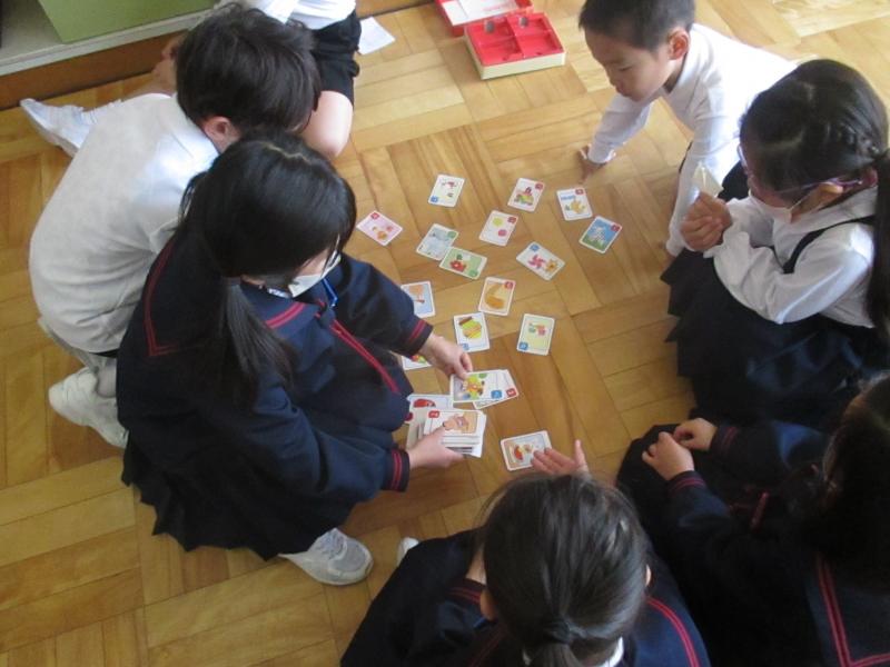 5つのグループに分かれて、学校内を案内したり遊んだりしていました。