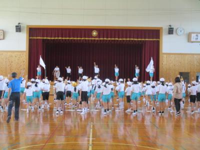 今日は、体育館で3限目白組、4限目赤組に分かれて応援練習がありました。体育館に大きな声が響き、どちらも力強い応援でした。運動会当日の応援タイムが楽しみです。