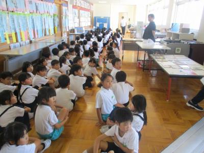 8月5日~8日までの間、福岡県の方に井上小学校から4人の児童が参加しました。17日(火)のお昼に全校児童が集まり、校内発表を行いました。博物館へ行ったこと、自然体験をしたこと等ステージで発表をしました。1日目から4日目までのことをそれぞれが分担して発表しました。今週20日にはシグナスで全員で集まっての報告会があります。貴重な経験を今後の学校生活に生かしてほしいです。