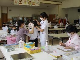 感染症対策として,子供たちは無言です。自分の名前も「お願いします」や「ありがとうございました」という挨拶もしません。とっても静かな検診でした。子供たちに代わり,養護教諭が1人1人の名前や問診表の内容を医師に伝えました。