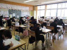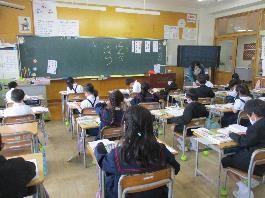 6年1組は算数の復習をしていました。算数の学習用語の定義を正しく言えるように繰り返していました。言葉にすることで皆が同じ理解をすることができます。6年2組は,これまでの学習を生かして解く活用問題の見直しをしていました。担任が,出題者の意図と間違いやすい点を解説し子供たちも納得していたようです。