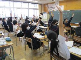「鶏のから揚げお茶風味」を美味しくいただき,楽しい昼休みを終え,静かに掃除をした後の5限目の授業です。