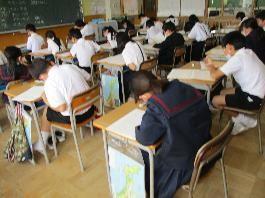 1限目は4年生と5年生が国語を,6年生が社会を行いました。2限目は4年生と5年生が算数を,6年生が理科を行いました。それぞれ前学年までに勉強したことですので,すらすら解ける問題もありましたが,忘れてしまったところもあるようでじっくり考えたり思い出そうとしたりしていました。