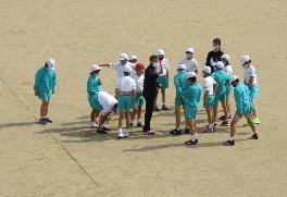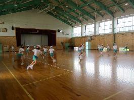 1年1組は書写の時間です。文字の練習だけではなく,絵を見て言葉に置き換え,その絵を塗っていました。大変丁寧に塗っている子や同系色のグラデーションにしている子もいました。1年2組は体育です。体育館中に広がった後,列毎に整列していました。自分の位置を覚え,綺麗に並んでいます。