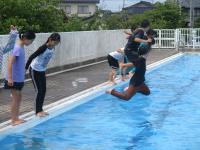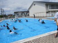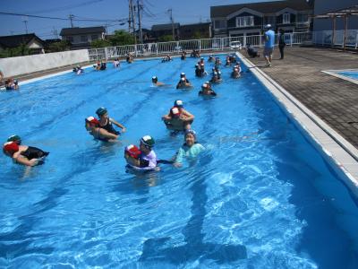 17日(水)の5限目に6年生が着衣泳をしました。実際に海や川、用水等に落ちてしまった時にどのくらい体に負荷がかかるか、その後どう行動したらいいのかについて学習しました。また、パニックにならないようにすることや、一緒にいる子は大人を呼ぶ等の実際の行動についても話をしました。プールでは、最初に水に入ってどのくらい衣服が水を吸って体が重く感じるかを体感し、その後いかに体を浮かせ続けることができるかを「〇分間チャレンジ」として体を浮かせました。ペットボトル等をつかって浮力を感じる体験もできました。水の事故は絶対あってはならないものですが、万が一水の中に落下した時に、この学習が役に立ってほしいと思います。全学年実施予定です。
