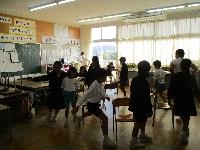 毎日の掃除は,縦割りグループ「なかよし班」毎に場所を任され,子供たちが分担して行っています。今日は,その担当場所交代の日でした。6年生が考え,担当の先生と相談して決めた役割をなかよし班の下級生に伝え,その後,新しい担当場所を掃除をしました。その場所で具体的に掃除の仕方を教えたり自分がやってみせたりする6年生が大変頼もしく感じられました。また,隅々まできれいに掃除をしている子や短い箒や長い箒を上手に扱う子も見られ,今日も綺麗になりました。