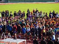 本当に爽やかな秋晴れでした。西部緑地公園陸上競技場のスタンド席は大勢の子供たち,ご家族の皆さん,教職員で埋め尽くされました。「第14回いしかわっ子駅伝交流大会」には男女とも90を超えるチームが出場し,健脚を競いました。