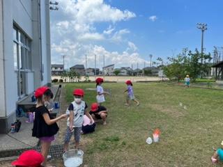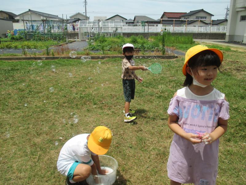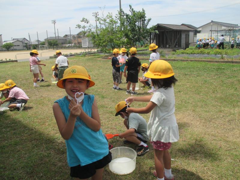 1組は7月6日、2組は8日に、夏となかよしの学習で、しゃぼん玉遊びをしました!