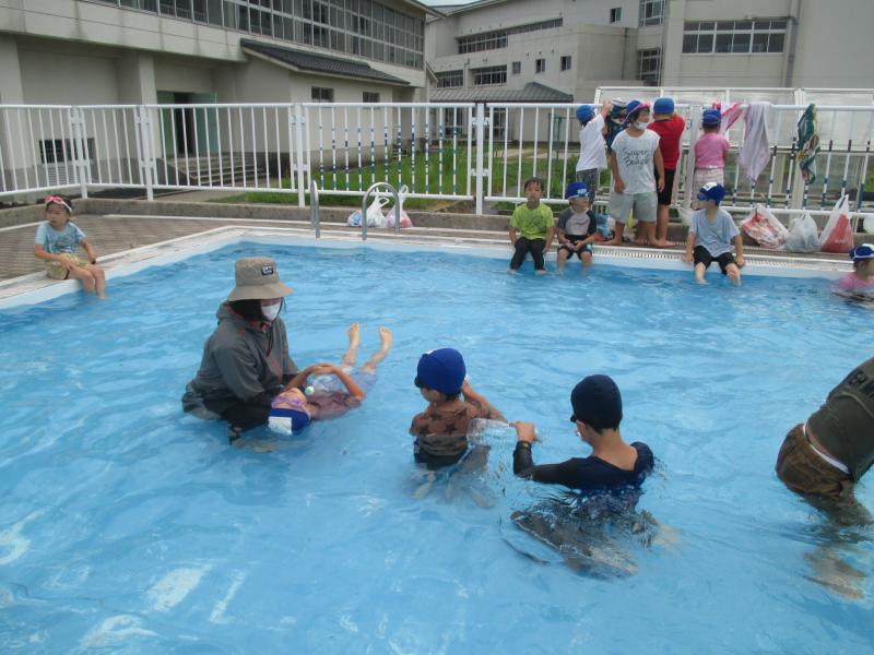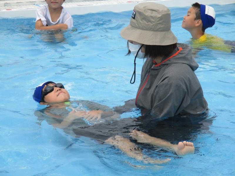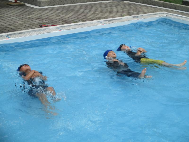 服を着て、水の中を歩いてみたり、ペットボトルを抱きかかえて浮いてみたりしました。
